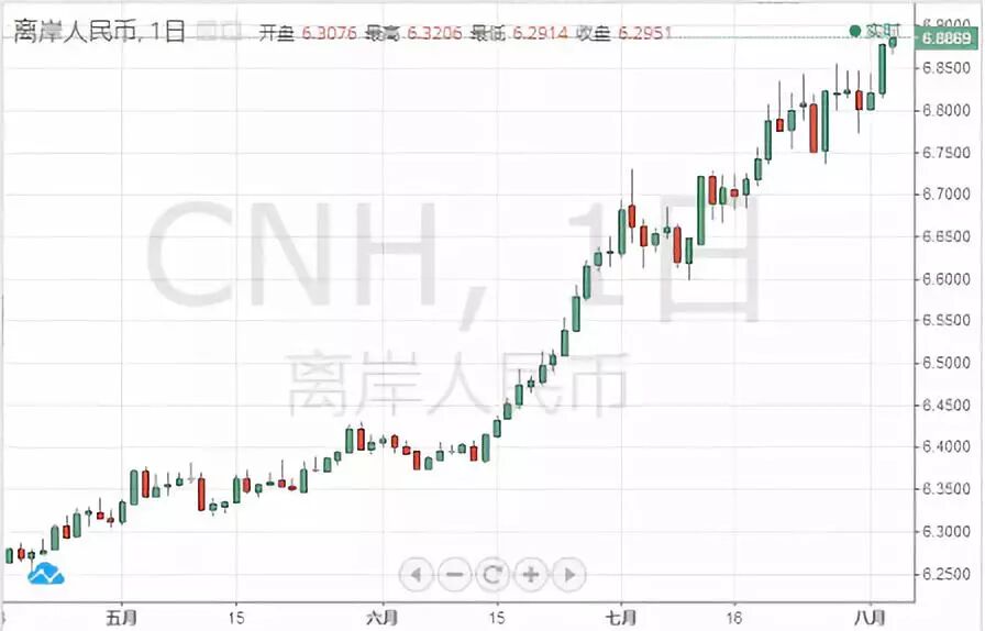 离岸人民币兑美元跌破6.89,纺织业外贸出口迎来好时机?发表时间:2018-08-13 10:35 8月3日,人民币中间价大幅下调380点 ,离岸人民币报6.8915,刷新2017年5月以来新低。 美元指数大涨,突破95关口,之前美联储对美国经济的乐观评估,以及国际贸易局势再度趋紧提振美元。接受外媒调查的经济学家的预期中值显示,美国7月非农就业岗位料增加19万,上月为增加21.3万。